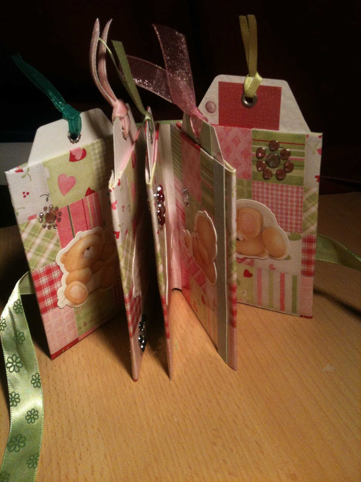 I recently found a tutorial for a book made from the inside part of the toilet roll. It looked so good that I had to try it. My finished product wasnt as good as the one made by the person who did the tutorial but it turned out well. I made it for a friends daughter who just had a baby girl at 7.05am today (04/05/12) and she weighed in at 8lbs. Im pretty chuffed for both 'mummy' and 'granny' lol